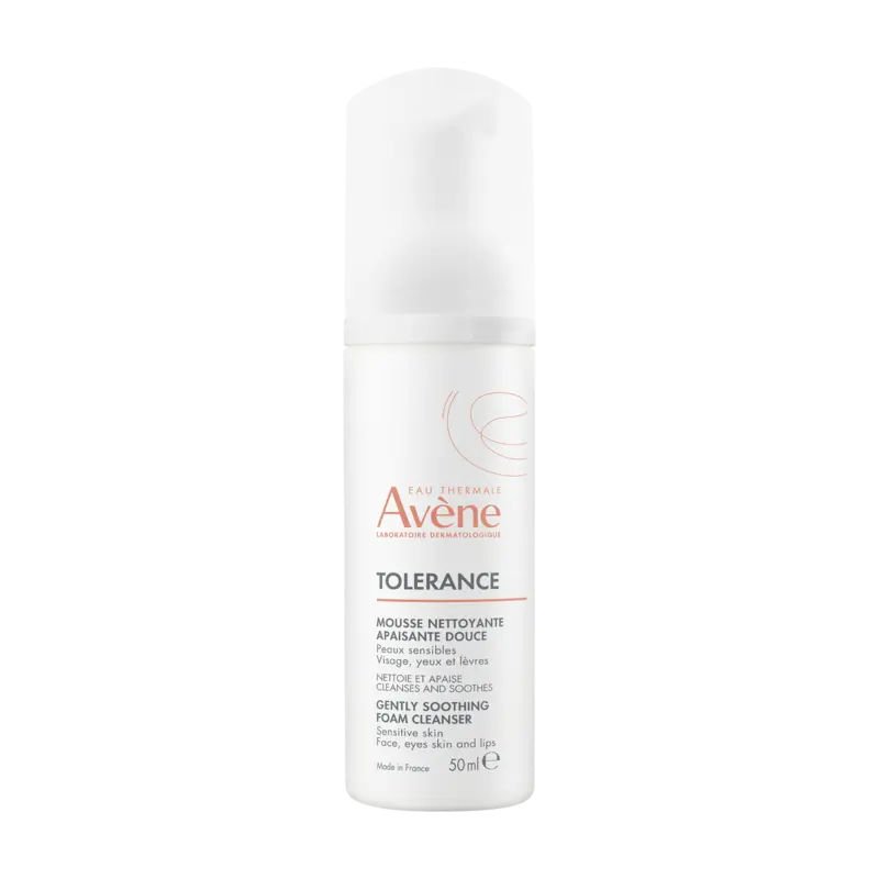 The Tolerance Gently soothing foam cleanser, an innovation where gentle care meets powerful results for those seeking comfort and calm for their sensitive and hypersensitive skin, formulated with 99% natural origin ingredient, this rinse-off formula enhanced with effective make-up removing properties offers immediate relief from tightness, dryness, and burning sensations, providing up to a 50% reduction in skin sensitivity after 28 days of regular use, fragrance-free, alcohol-free, this ultra-restoring and soothing cleanser features TRP-Regulin to reduce skin discomfort and block inflammation, alongside glycerin and thermal water to hydrate, restore, and reinforce the skin's microbiome, Enjoy the rich, airy foam with a creamy texture, delivered through an easy-dosed pump for a luxurious feel that leaves your skin soft and calm.
